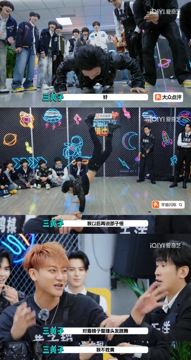 黄晓明选择展示力量型技能,20个击掌俯卧撑,大哥真是为了这个家燃尽了。因为裤子不方便挑战个人技的黄子韬小秀了肌肉和提供了超强情绪价值,被邵子恒跳舞征服到狂扇自己,放话以后再吐槽邵子恒照镜子跳舞直接不姓黄。