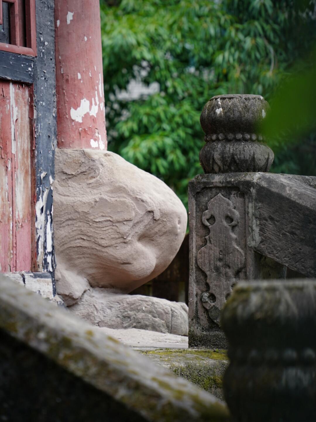 从塔基往上数,第一层的柱础最是不讲理。别家古建的柱础要么刻莲花,要么雕石鼓,这里却蹲着八个圆雕小鬼,个个瞪着眼鼓着腮,手挽手围成圈,把八根内柱稳稳托在肩上。有老人说这是"小鬼扛塔",镇住了地下的潮气,可仔细看那些小鬼的表情,左边第三个嘴角偷偷向上翘,右边第二个眼角还藏着笑,倒像是一群顽童在较劲,谁也不肯先松劲儿。柱础上的包浆厚得能刮下一层,是两百年间无数人摸出来的——老街坊说摸小鬼的肚子能生儿子,学生娃考试前要摸小鬼的脑袋,结果把几个小鬼的天灵盖摸得油光锃亮,倒让这镇邪的石雕添了几分烟火气。