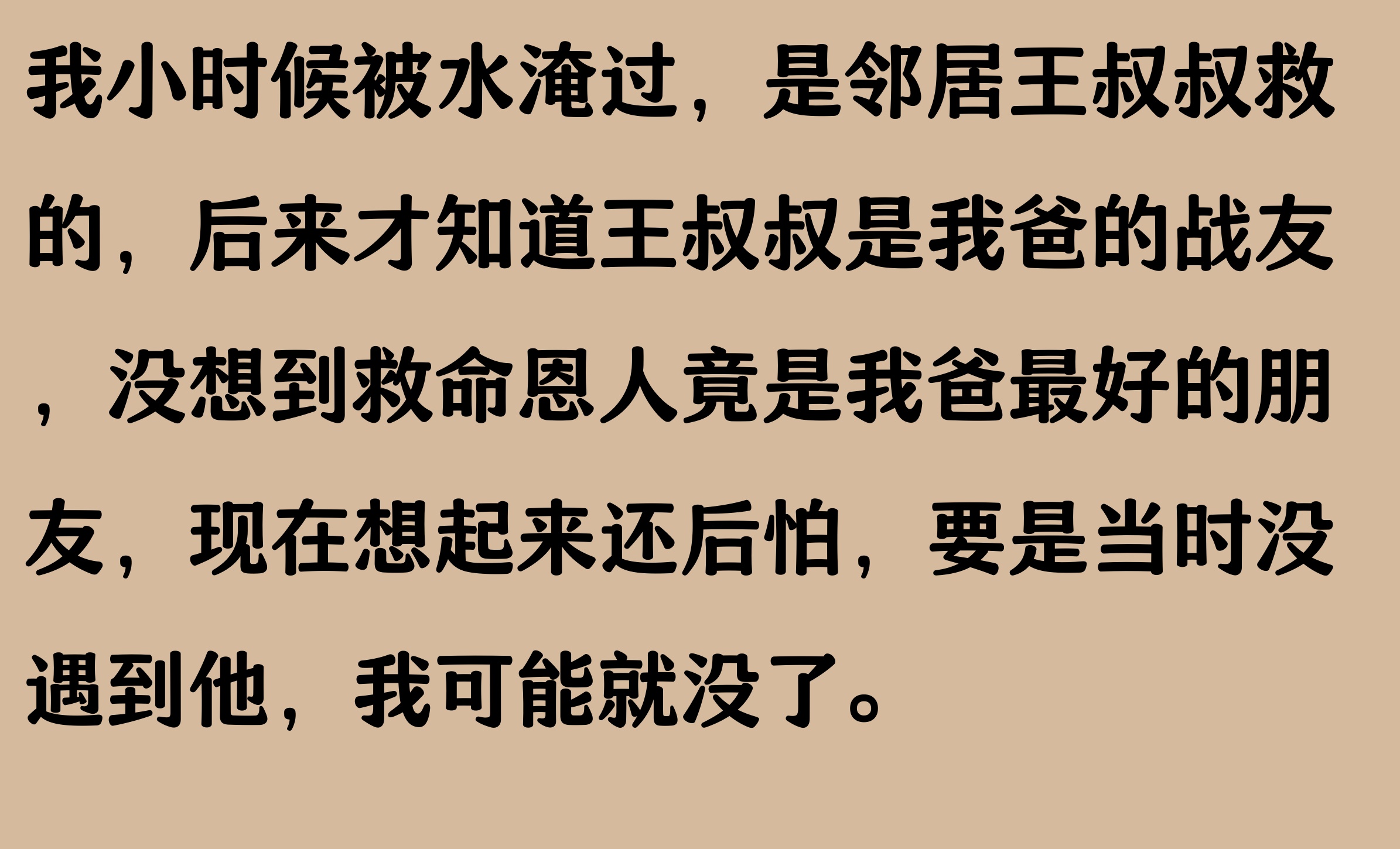 那年夏天,我在河边玩水,一个8岁的小男孩突然溺水了,我二话不说跳进河里把他救了上来。没想到30多年后,这个小男孩竟然找到了我,原来他一直在苦苦寻找恩人。更没想到的是,这个恩人竟然是我现在的亲家。想起来真是既感动又唏嘘,人生真是充满了意外和惊喜。