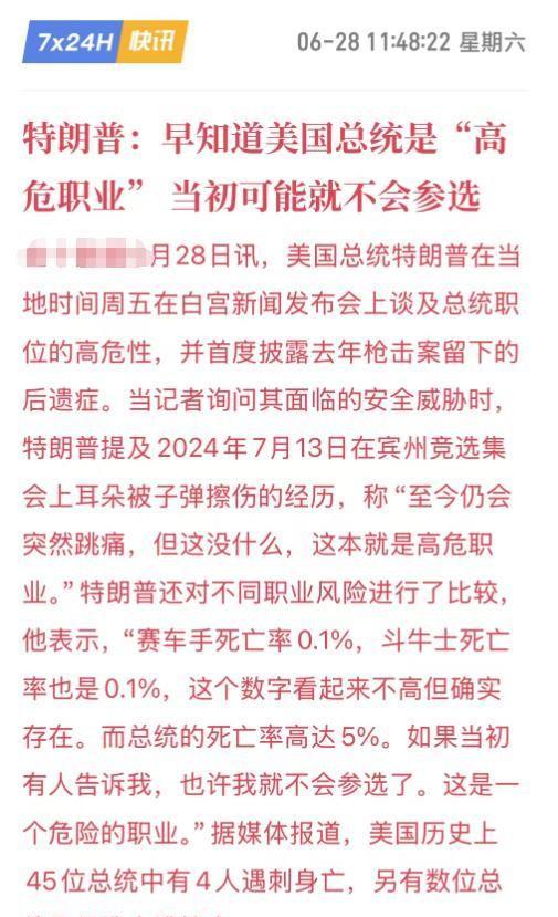 或许是战争的压力也或许是其他,特朗普本人在28日时,竟然发文表示:“要是早知道美国总统会是高危职业,当初可能就不会参与竞选”。