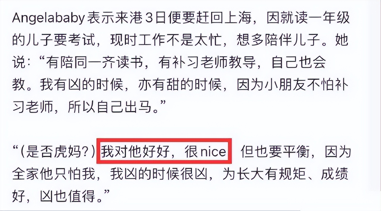 言外之意,小海绵只有杨颖能够“管得住”他。不过,杨颖表示自己凶的时候很凶,为了儿子长大有规矩、成绩好,凶也值得。