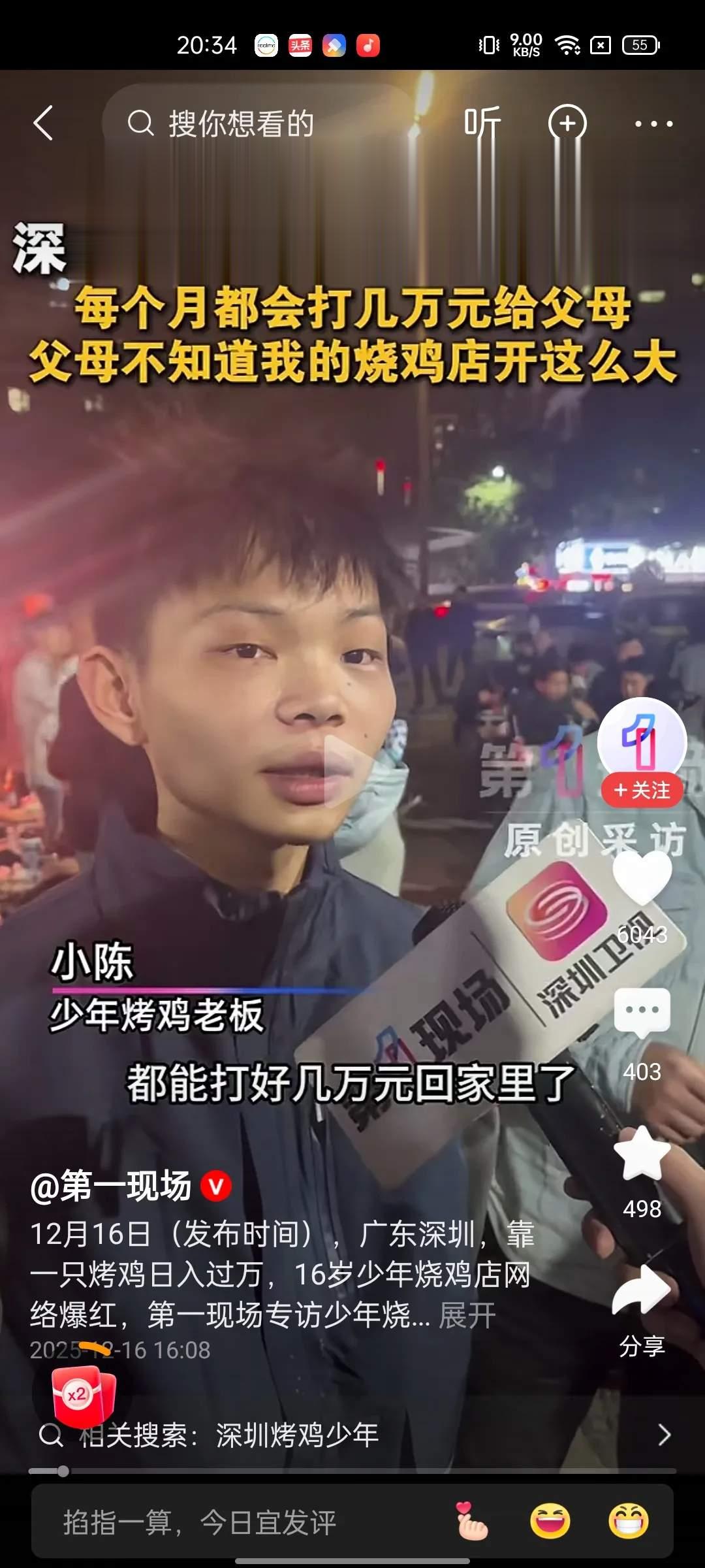 最近深圳街头的16岁烤鸡少年彻底火出圈了!