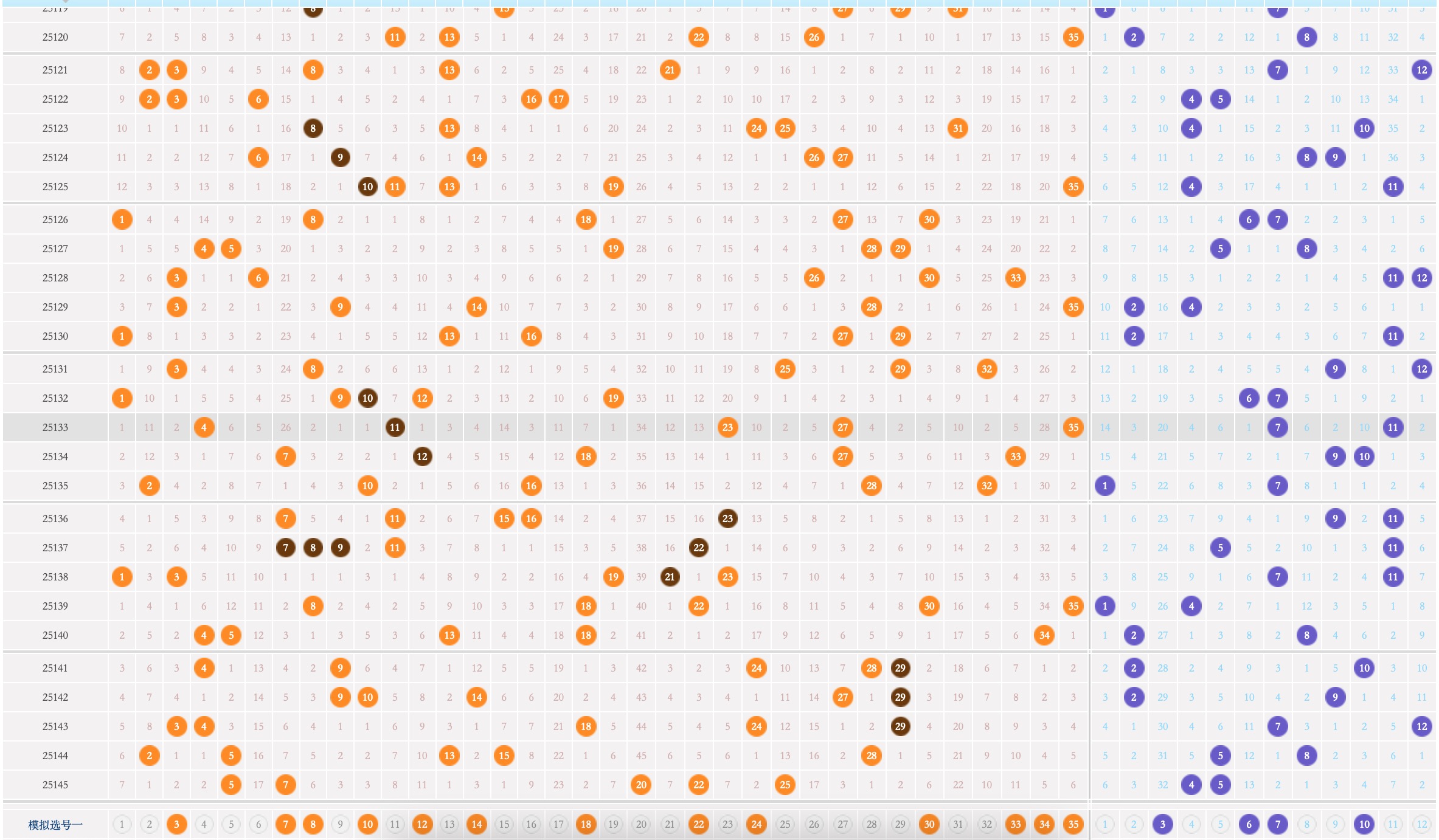 根据解析条件可知本期,本期大乐透前区红球出球范围码考虑3_7_8_10_12_14_18_22_24_30_33_34_35,后区篮球码考虑3_6_7_10,本期参考组合码分别为;03,12,14,18,22+03,07