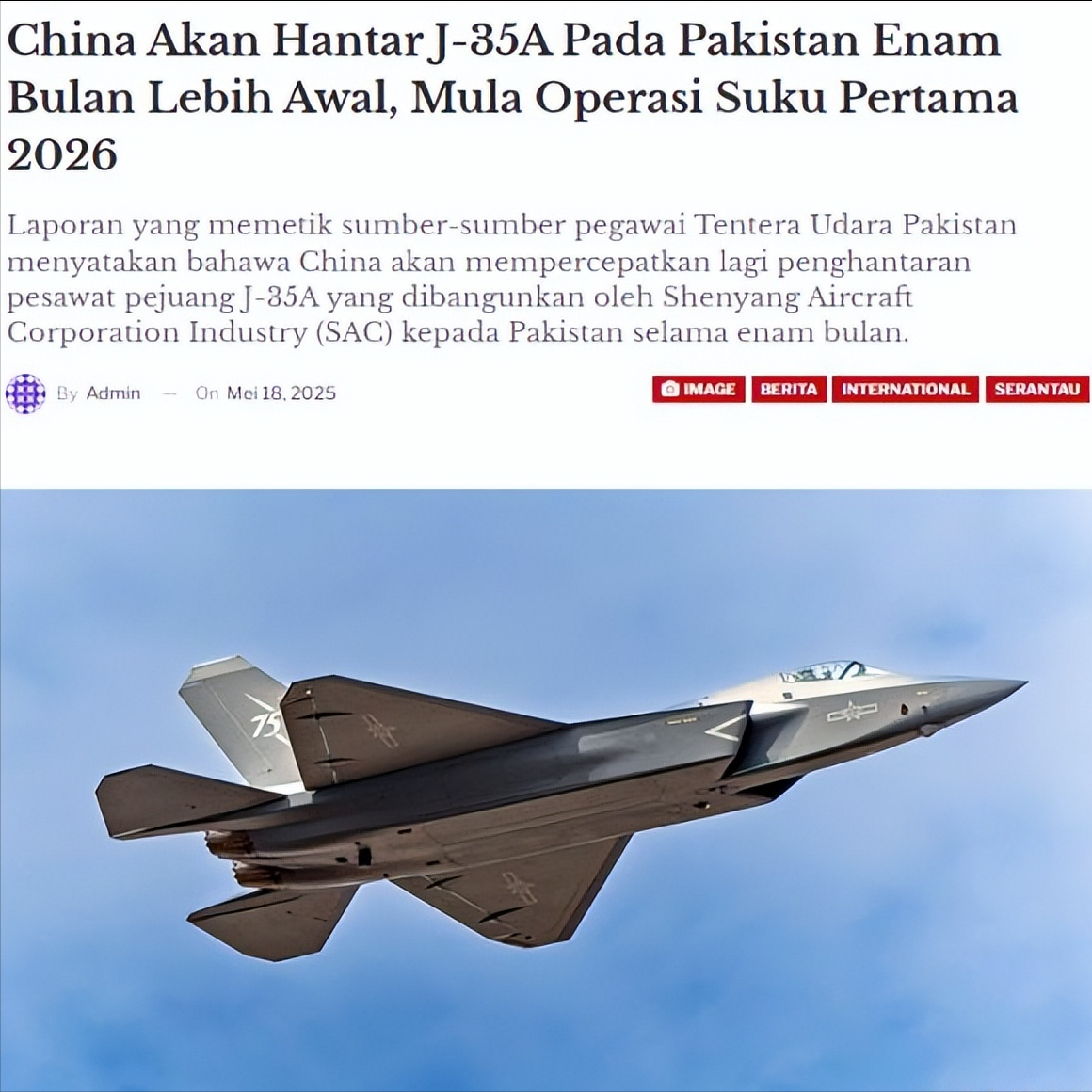 巴基斯坦空军早已暗示,希望从中国采购40架歼-35A战机。中国已同意将交付时间提前6个月,预计2026年初首批战机将抵达巴基斯坦。这一举动的深意在于: