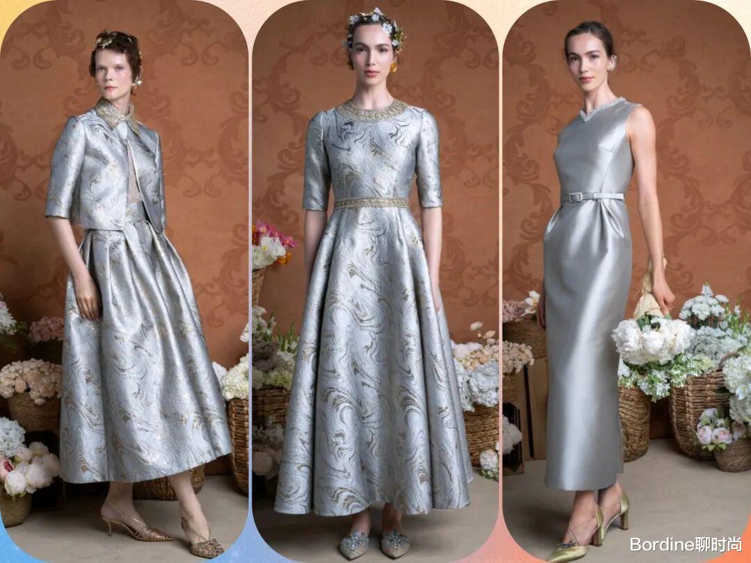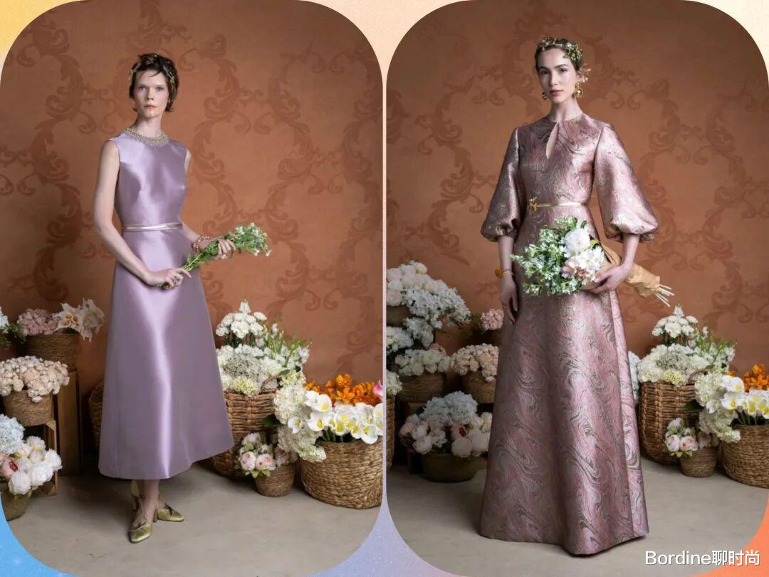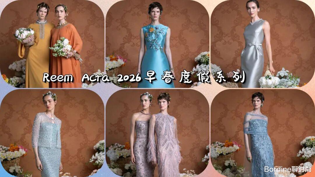 Reem Acra 2026早春度假系列,这些服装在裙装的优雅中,修身和裙摆之间有着更多的廓形线条感,还在面料的材质中,增加了更多的质感,薄纱的轻盈飘逸、绸缎的光泽等面料更高级,以斗篷等元素的设计,结合了鱼尾、腰带等设计,打造了华丽优雅的宫廷风气质。