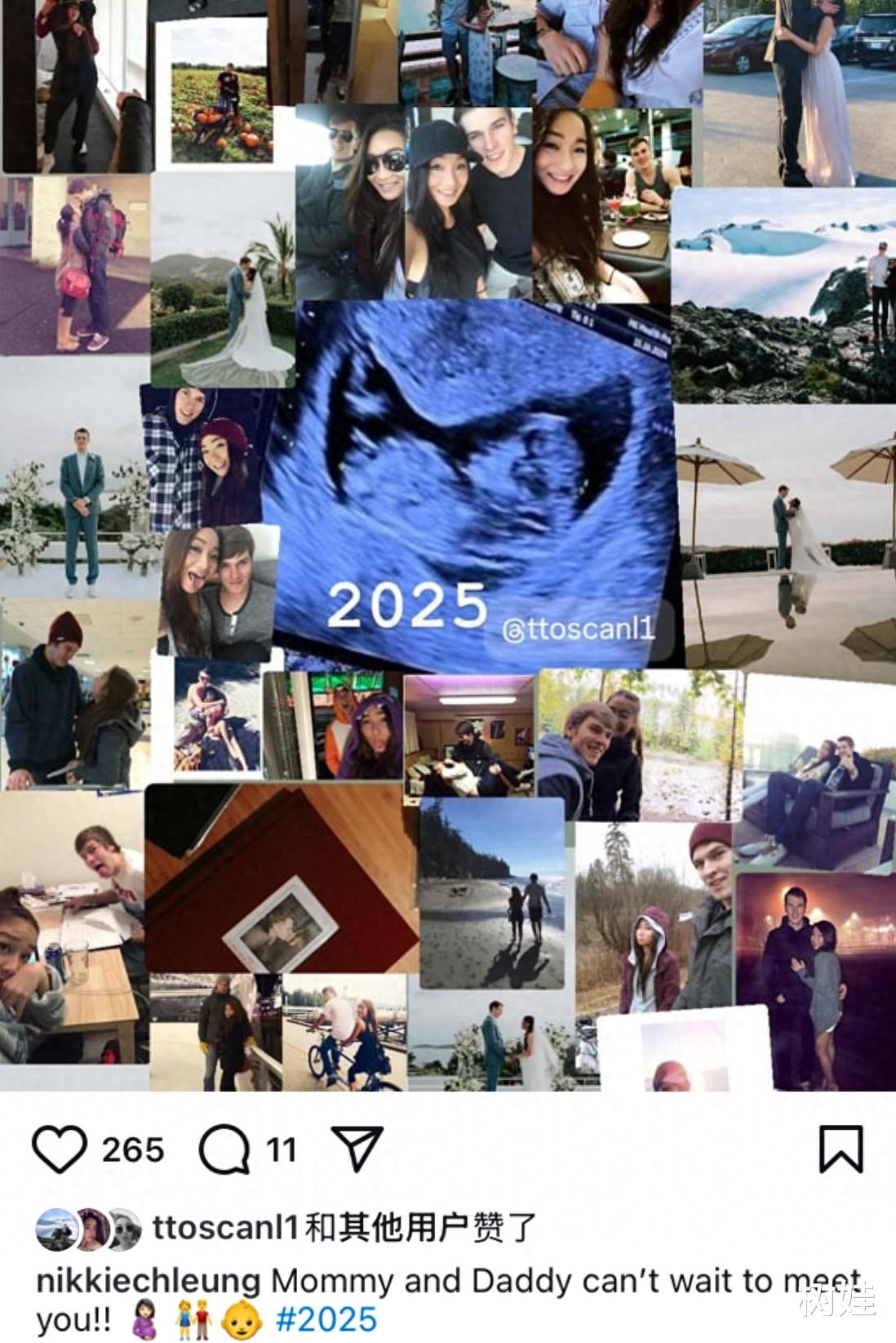 梁静曦社交平台上晒出了与丈夫的“相片墙”,相片墙中贴满了她与丈夫在不同时期的各种照片,有初相识的,有在求学期间的,有一起旅游的,还有结婚时候的。而在这些照片的正中央,有一张怀孕超声波的照片最醒目,上面标注了“2025”的字样。显然梁静曦就是以此来宣布她也怀孕了,并且孩子将会在2025年出生。梁静曦以英文留言称,“妈妈爸爸已经迫不及待地想要见到你”,除了留下2025年的字样外,还有三个头像,一个是孕妇,一个夫妇,最后一个是男孩头,显而易见,梁静曦已经公开了孩子的性别,是一个男宝宝。