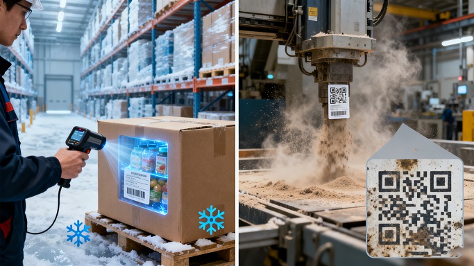 RFID手持机就完全没这些顾虑。它能穿透纸、塑料、木头这些非金属的东西,就算标签贴在商品包装里面、被箱子挡住,或者表面脏了、磨坏了,只要在信号范围内就能读出来。像零下20度的冷库、潮湿的农产品仓库,甚至粉尘多的工业车间,RFID手持机都能稳稳工作。比如冷链仓库盘冷冻食品,工作人员不用拆开保温包装,隔着纸箱就能读出RFID标签的信息,既省时间,又不用担心商品解冻坏了。