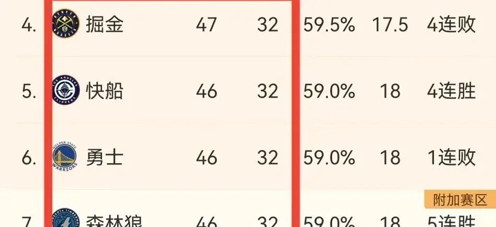 掘金赛程难度排名西部第4:国王(西部第九)、灰熊(西部第八)、火箭(西部第二),对手平均胜率57.9%。掘金目前排名西部第四,但只领先五至八名0.5个胜场,明天他们将有可能加入快船、勇士、森林狼、灰熊(全部46胜32负)的大家庭,因为后四者明天都有比赛,如果他们全部赢球,届时4-8名5队战绩将同为47胜32负。