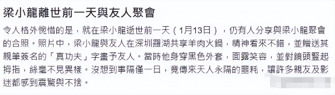 很多人可能纳闷,梁小龙明明是14号离世,怎么拖到18号才发消息?其实这是他自己早就定好的安排。