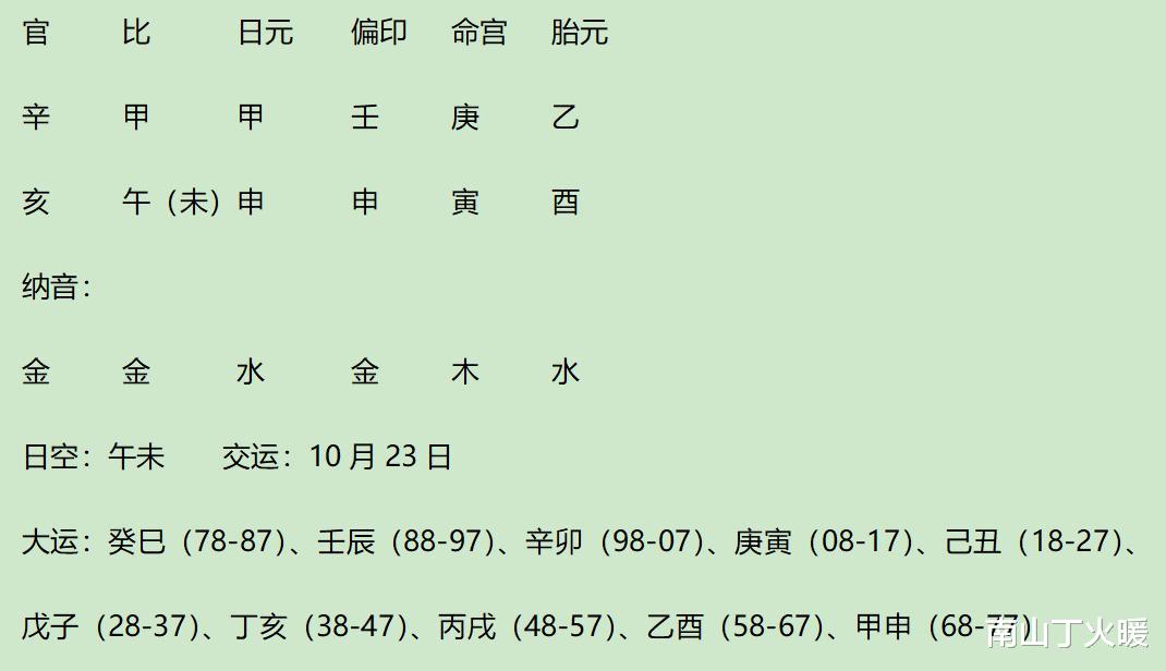 壬申运(2011-2020),壬财透,申合子;财生官,财局,佳运。