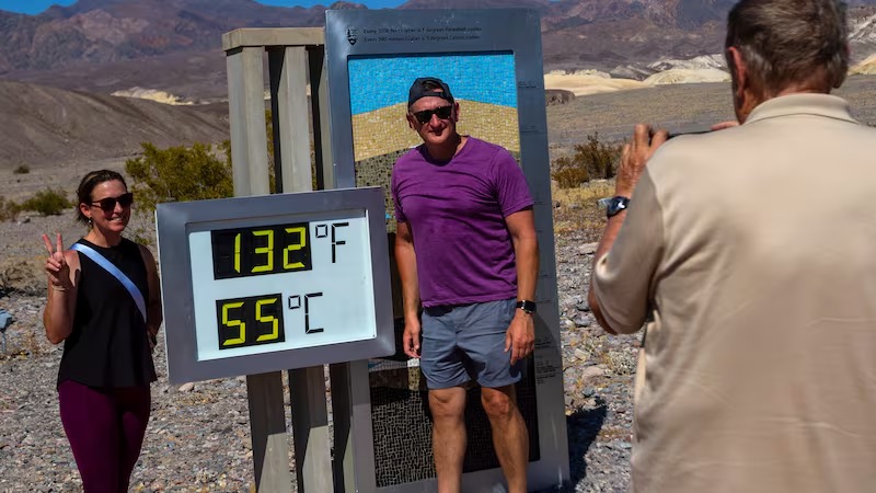 来自法国、西班牙、英国和瑞士的游客在周一从空调车辆中走出,拍摄那些与他们家乡雪山和翠绿丘陵形成鲜明对比的荒凉景象。美国人同样被这份新奇所吸引,即使公园警告游客要警惕这种极端高温可能对健康造成的真正威胁。