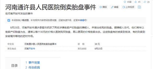 信息来源:“百度百科”——(河南通许县人民医院倒卖胎盘事件)