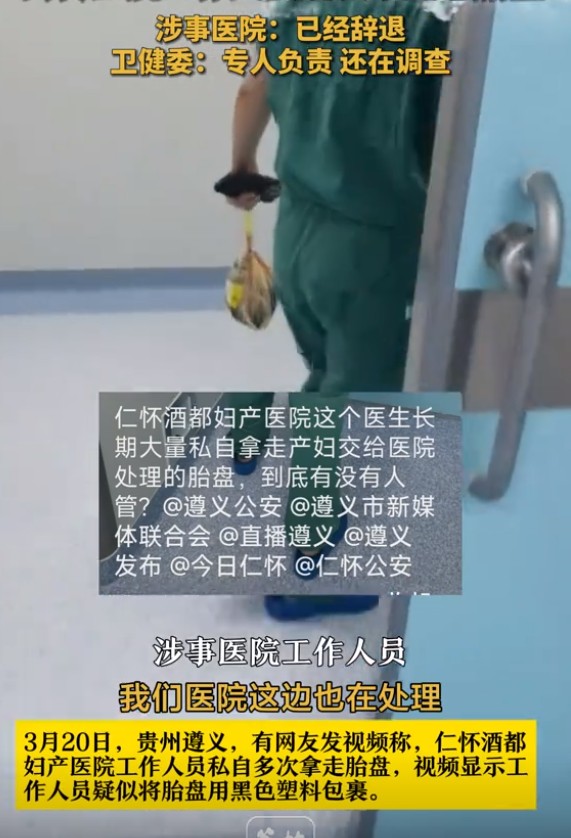信息来源:“河南广播电视台大象新闻官方抖音号”——(医院工作人员被举报私自处理胎盘?涉事医院:已经被辞退,当地卫生健康局:正在调查期间)