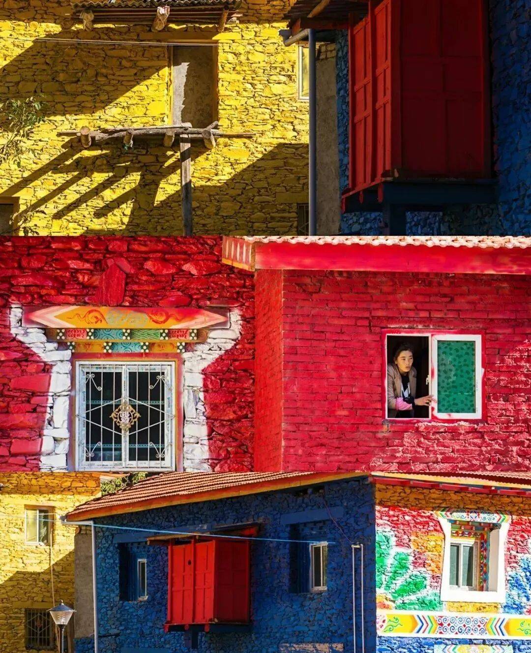 走在村里,就像在油画里散步。每栋小楼颜色都独一无二,阳光是最好的画师,把墙面照得明亮鲜活,炊烟从彩色屋顶升起,瞬间有了人间烟火的暖意。