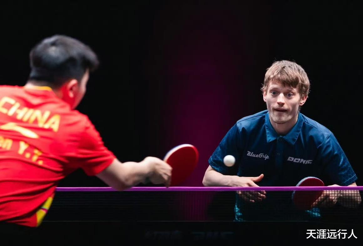陈垣宇,以3-1(8-11,11-5,11-4,11-4),逆转拿下安德斯·林德,格罗特退赛,丹麦战队全军覆没,陈垣宇下一轮迎来德比战,对战梁靖崑。