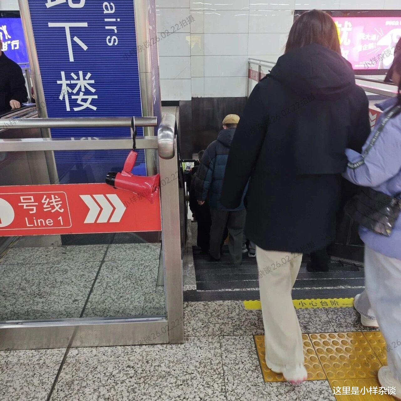 (沈阳地铁中街站,2026年2月22日拍摄)这个解决办法可能有点简单粗暴,但是也是没办法,因为沈阳地铁早期建设的线路存在这个缺陷,很多出入口只有上行电梯,没有下行电梯,所以导致这个步梯使用频率过高。