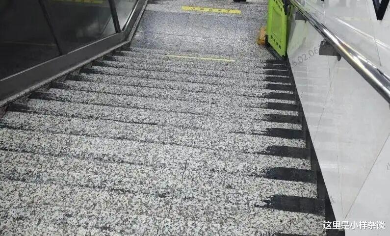 (沈阳地铁中街站,2026年2月22日拍摄)但是最初的设计上还没有后来这个区分台阶的标志,后来为了防止乘客摔倒采取了在每层台阶刷黑色油漆的方式,同时在部分台阶处还设置了扩音器用来提醒乘客。