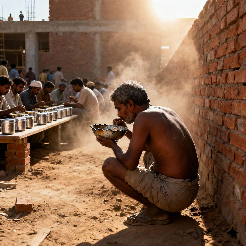 Raju心里清楚,那张桌子本就没他的份,虽然没人明说禁止,可规矩从来不需要写在纸上,只要你生为达利特,只要你做的活是,砌墙、清垃圾、挖土方,就等于默认与那桌子无缘,你若真走近了,空气立马变味,接着是旁人的目光,再然后就是一句轻描淡写的提醒你在那边吃更方便。