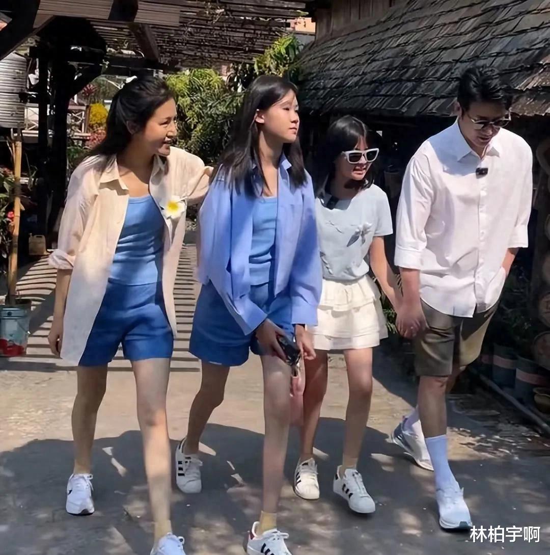 最引人注目的莫过于陆毅和鲍蕾的两个女儿——贝儿和小叶子。16岁的贝儿已经出落成亭亭玉立的少女,身高甚至超过了妈妈鲍蕾。她继承了父母的优良基因,一双长腿又细又直,与妈妈并肩而行,宛如一对姐妹花,令人不禁感叹基因的强大。而小女儿小叶子虽然年纪尚小,但一双长腿也初具雏形,举手投足间充满了童真和活力,尽显俏皮可爱。