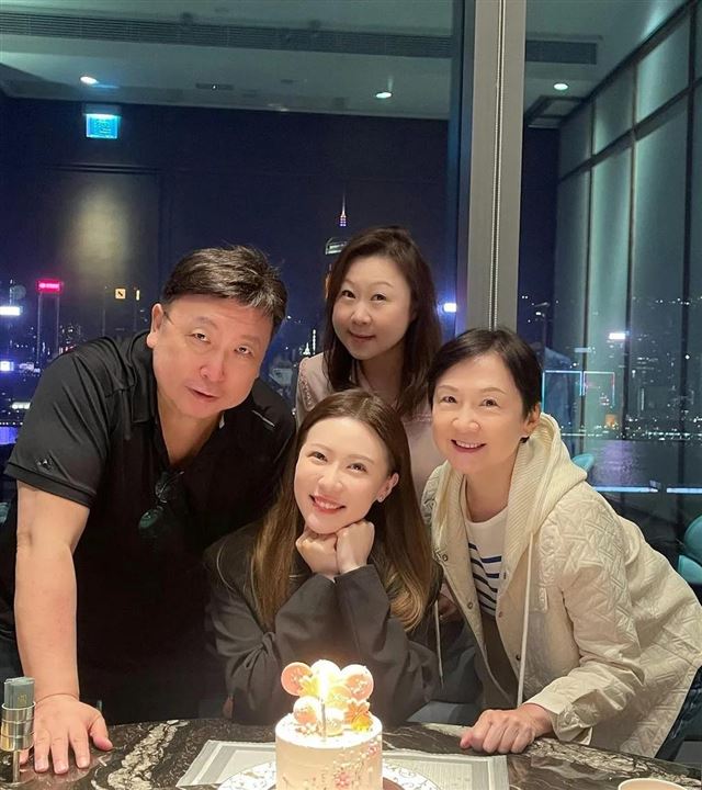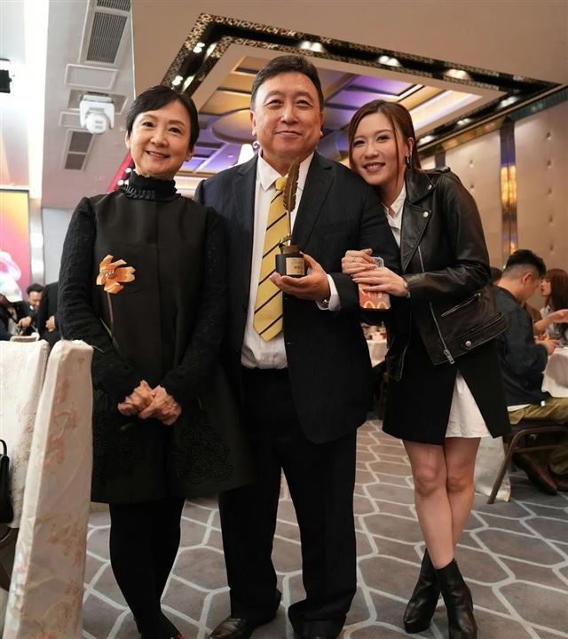 当晚,王海榛也在个人IG上晒出了一家三口的合照,并配文:“So proud of you❤️香港编剧会荣誉大奖。”