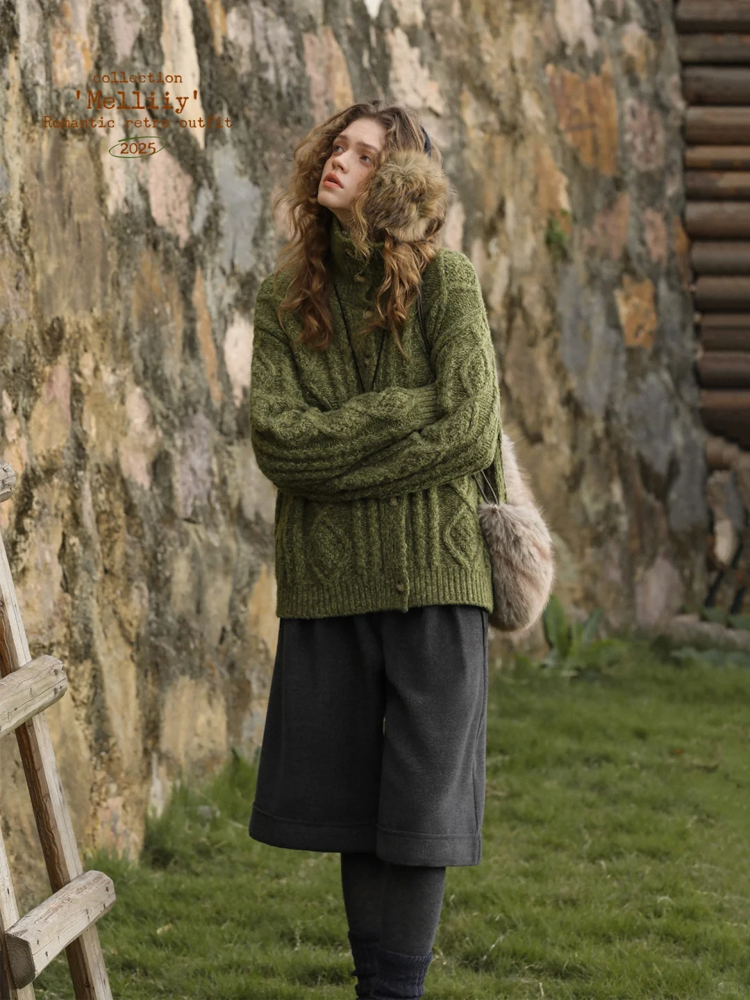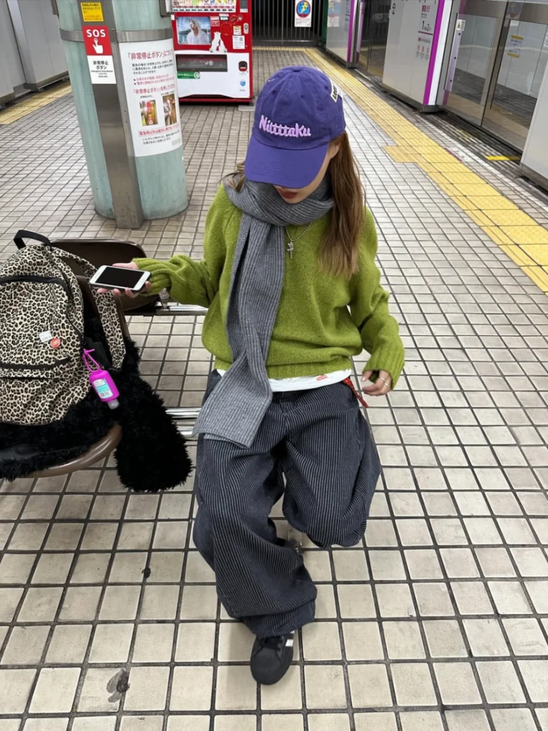 绿色和灰色真的很搭,绿色毛衣作为核心单品,搭配灰色阔腿裤,垂坠版型修饰腿型,松弛感拉满,走路自带气场;换成灰色半裙则多了几分知性柔美。