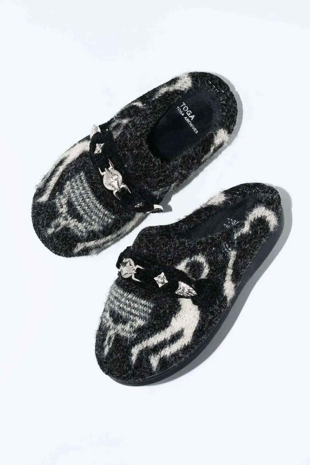 SUBU 将携手 TOGA 呈现双方的首次联乘作品,首次合作提供 红、海军蓝、黑三种配色。Winter Sandal 标志性的毛绒内衬与四层结构鞋垫,带来包覆性极强的舒适脚感。TOGA 在设计中融入品牌特色,使用针织鞋面编织原创西部风格图案与「Dancing Man」图形,并点缀象征 TOGA 的金属装饰,该合作系列现已发售。