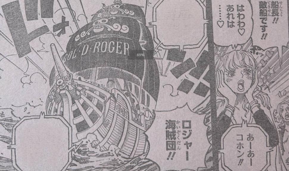 而卡普的突然来袭,让九蛇海贼团趁机离开。卡普使出了“拳骨陨石”攻击罗杰海贼团的船只,而罗杰则施展了名为“荒御魂”新招式,双方打到了五五开的局面。