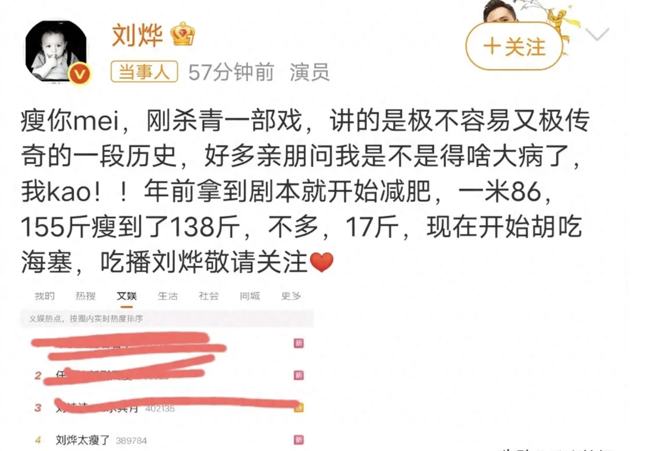 事后他回应是为了角色特意减肥,因为演的是一个经历曲折的角色,从年前拿到剧本就开始减肥,从155斤瘦到了138,整整瘦了17斤。