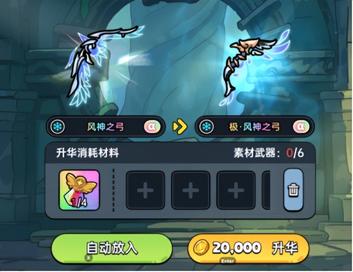 升华风弓所需4升华材料、5220冰砂、23.2w金币、6素材武器