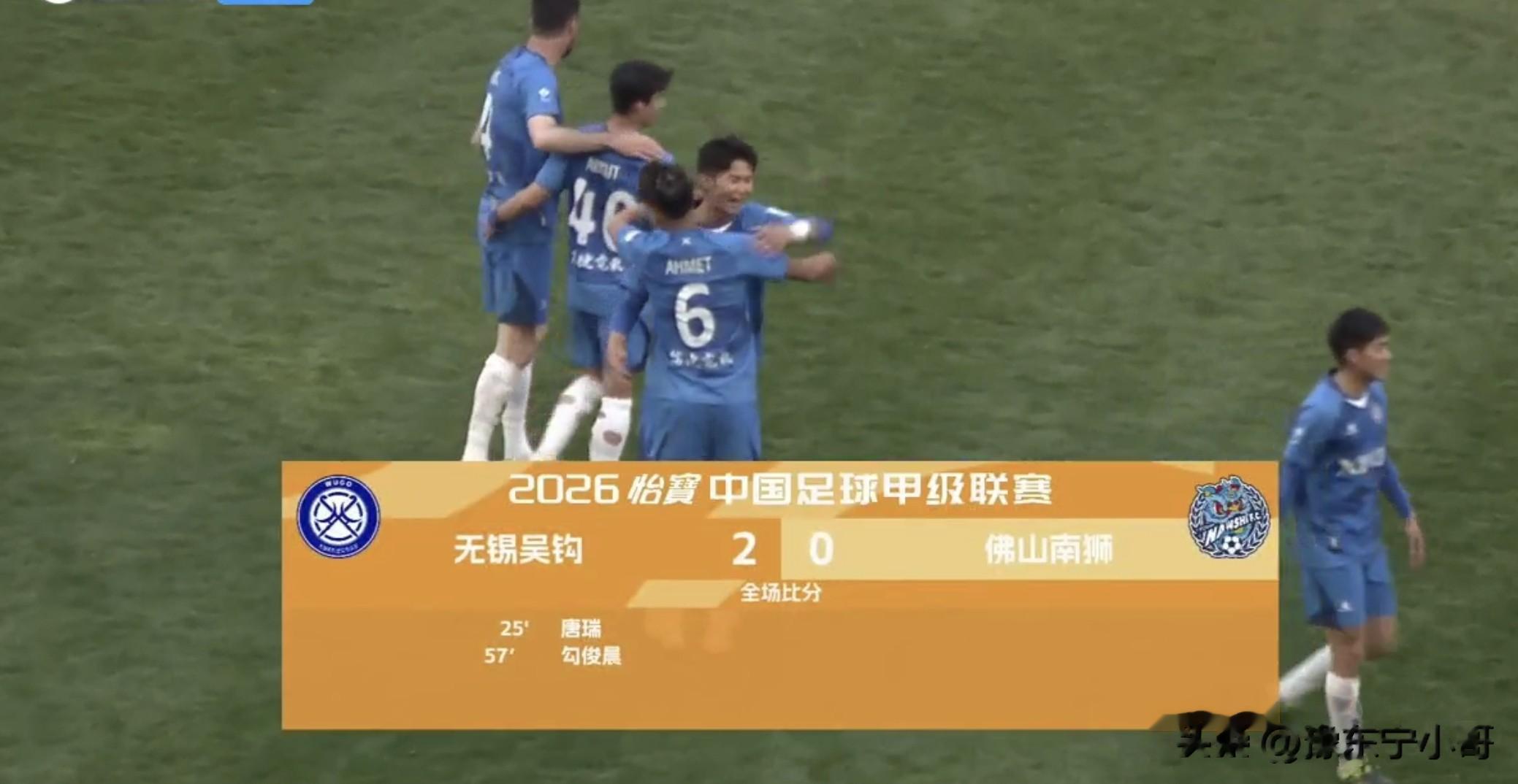 北京时间2026年3月14日,中甲联赛2026赛季重燃战火,在最早进行的一场比赛中无锡吴钩主场迎来佛山南狮的挑战,上半场第26分钟,佛山南狮门将石笑天出击失误,唐瑞吊射空门得分,无锡吴钩1-0佛山南狮,半场1-0领先佛山南狮