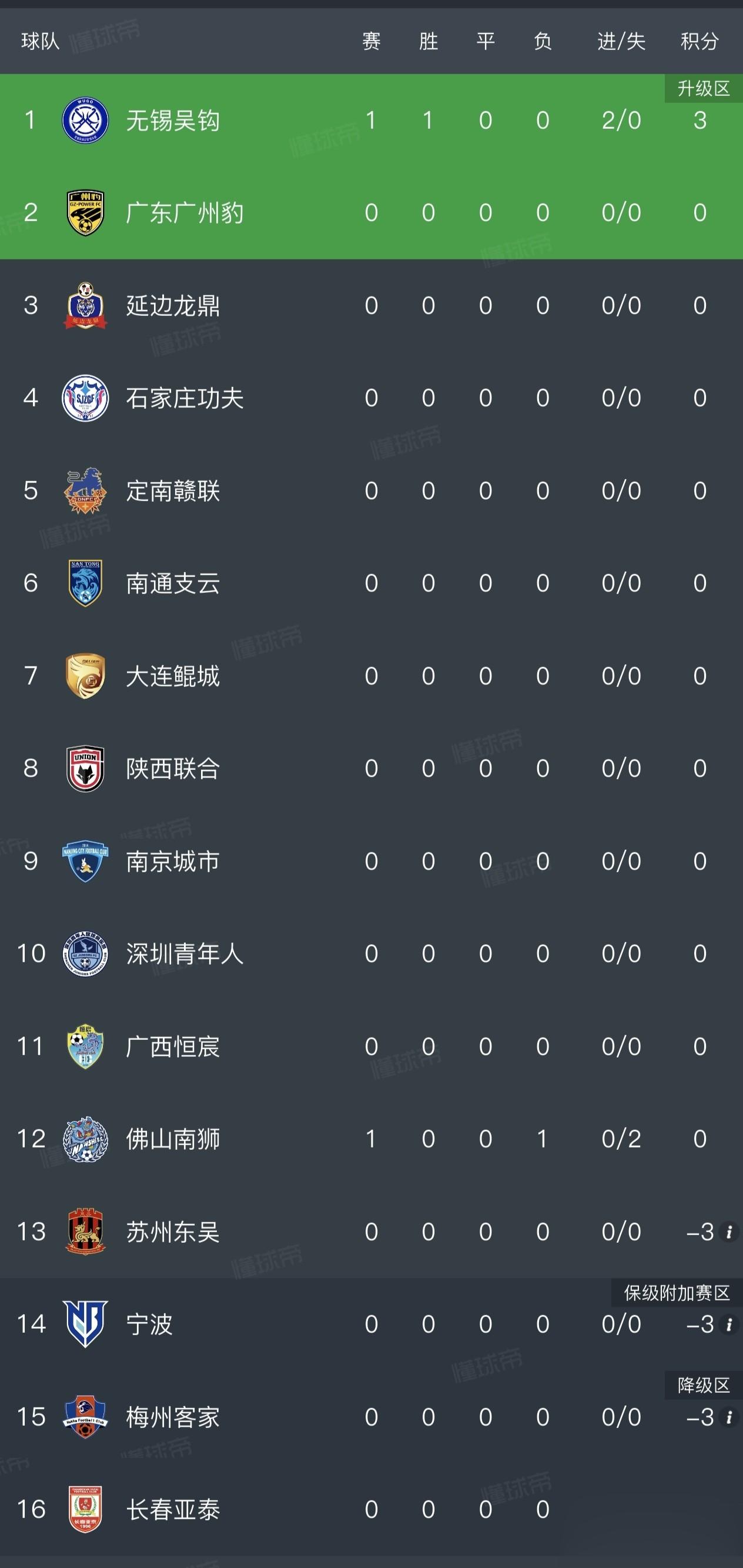 随着本场比赛结束,中甲最新积分榜如下图:
