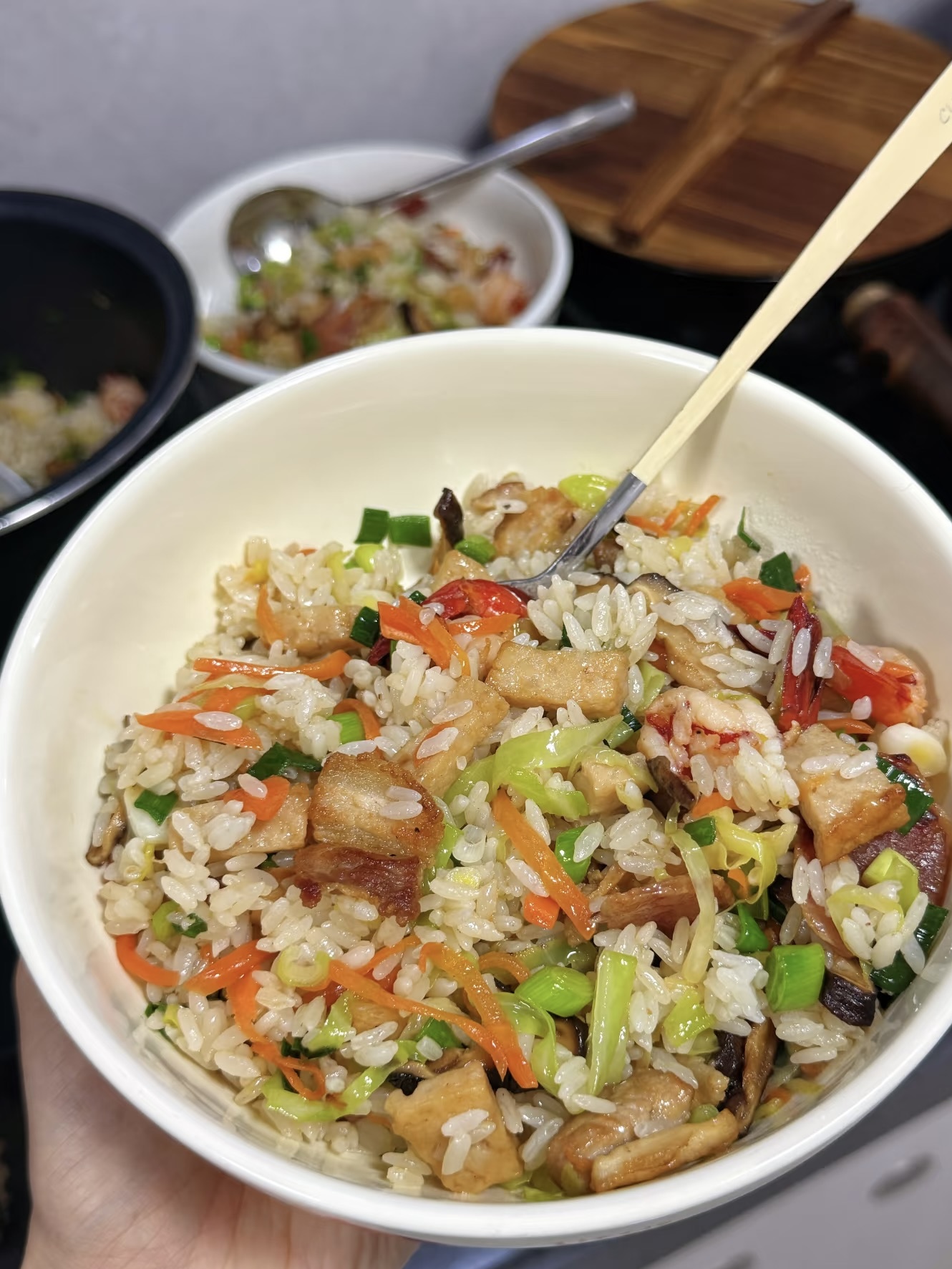 懒人彩蛋:所有步骤可提前一晚完成,菜炒好、米淘好,分盒冷藏,第二天回家按个煮饭键,二十分钟开吃,比外卖还快。剩的戈饭第二天压成饭团,裹蛋液煎一煎,变身“潮汕锅巴饭团”,同事闻到香味立马下单求链接。别犹豫了,今晚就戈一锅,记得把厨房窗户关紧,不然邻居真的会敲门!