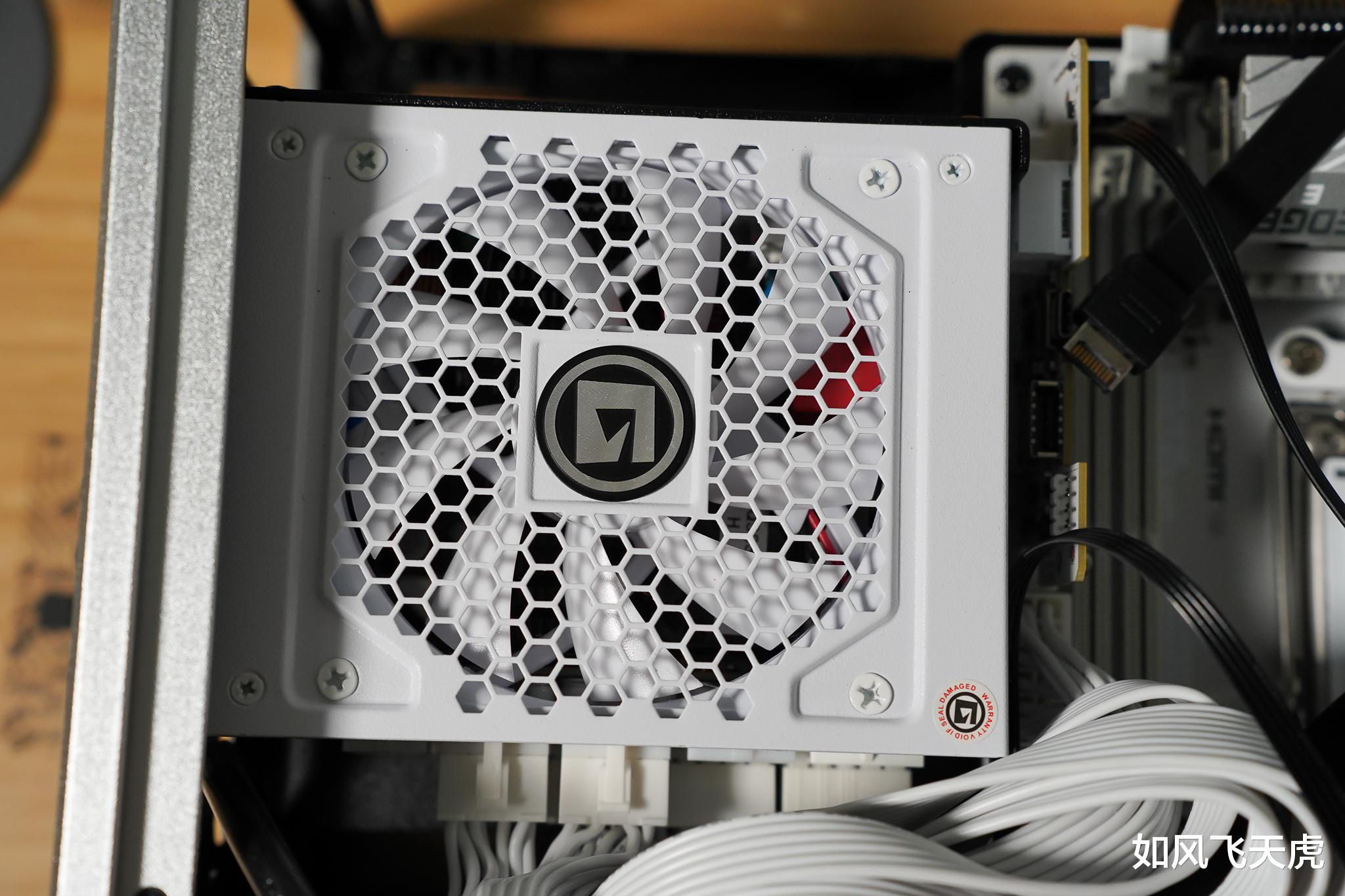 安装电源,是艾湃电竞的KR-850MW,一款白金SFX电源,850W功率,接口丰富,支持ATX3.1。这款机箱支持≤100mm的电源。
