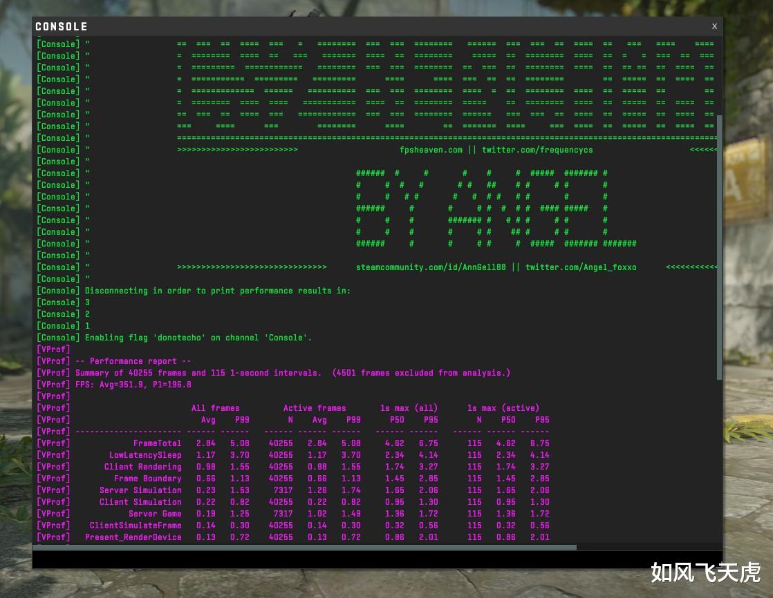 跑个游戏,CS2反恐精英, 1080P下 351.9帧,1%low帧是196.8,表现不错。
