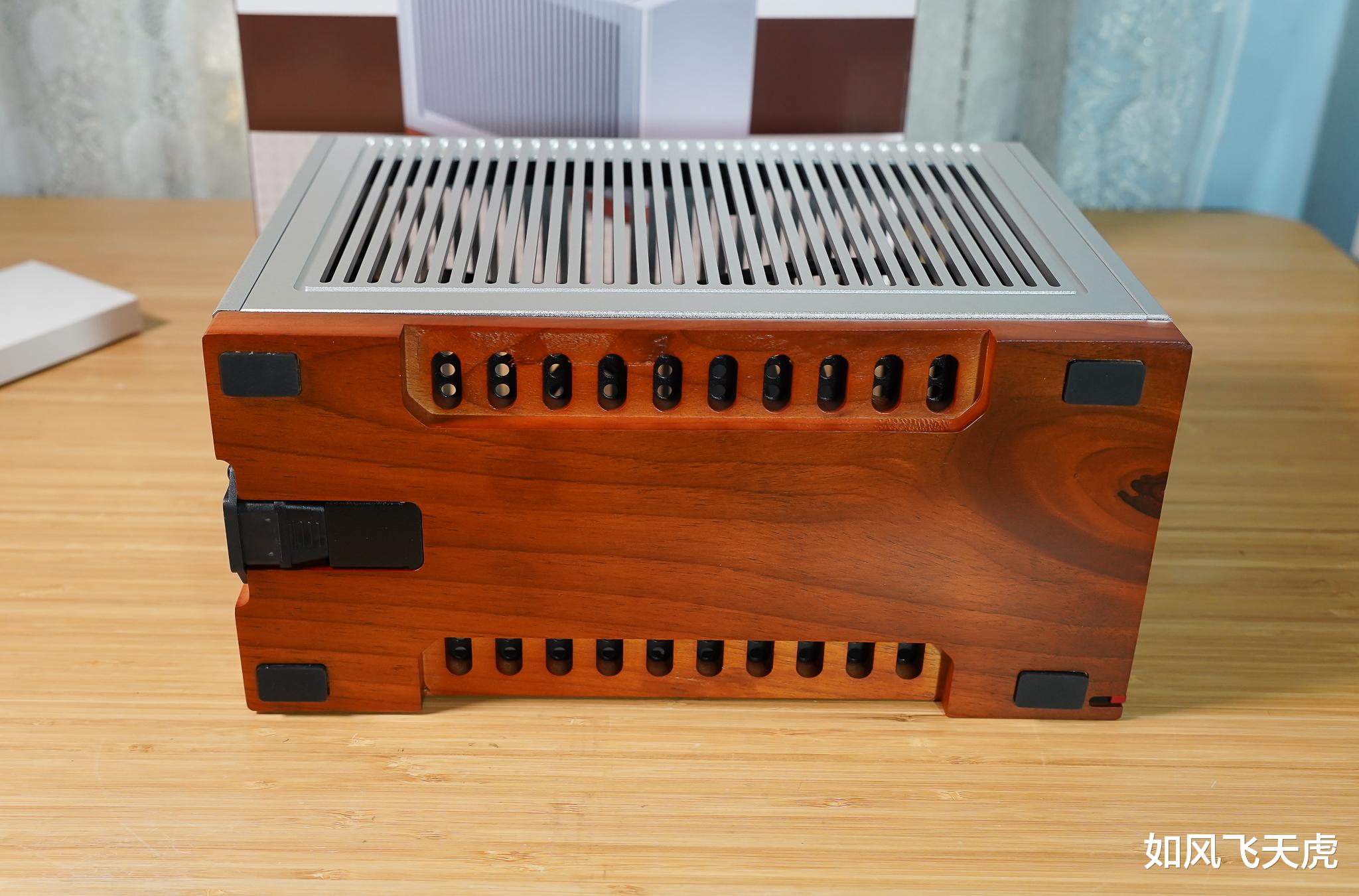 不过最近安装的一台ITX电脑,基本没有受到上面问题的困扰。它不仅安装相对轻松,而且还支持长达310mm的显卡,而且最大支持3槽的显卡,这样子,一些中高端显卡都可以安装了。而且它采用全铝合金外壳,底部却有木纹装饰,散热好的同时,也有气质。使用的就是乔思伯的T9 ITX铝制机箱。今天就同大家分享下,这款机箱的细节、安装和使用感受。