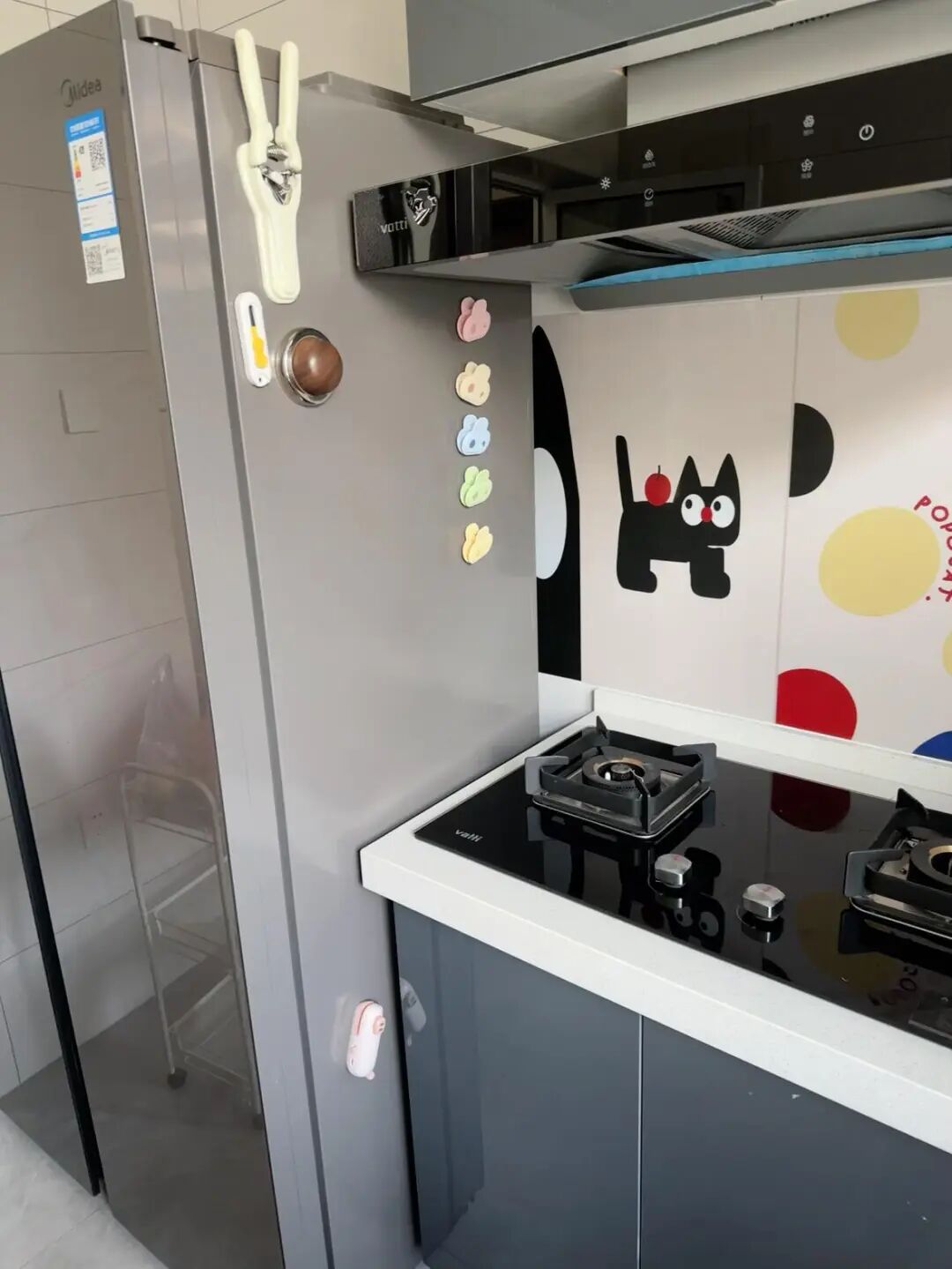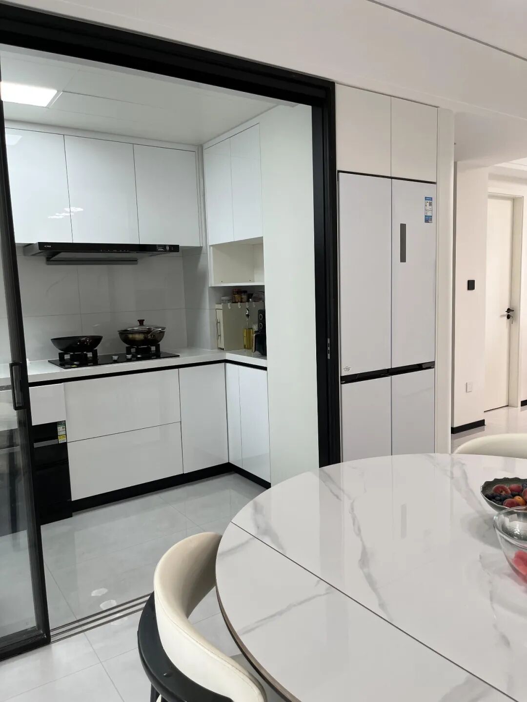 厨房更宽敞了,冰箱放在厨房门口,做饭转身就能拿到冰箱里的食材,也不用再担心冰箱沾油污。