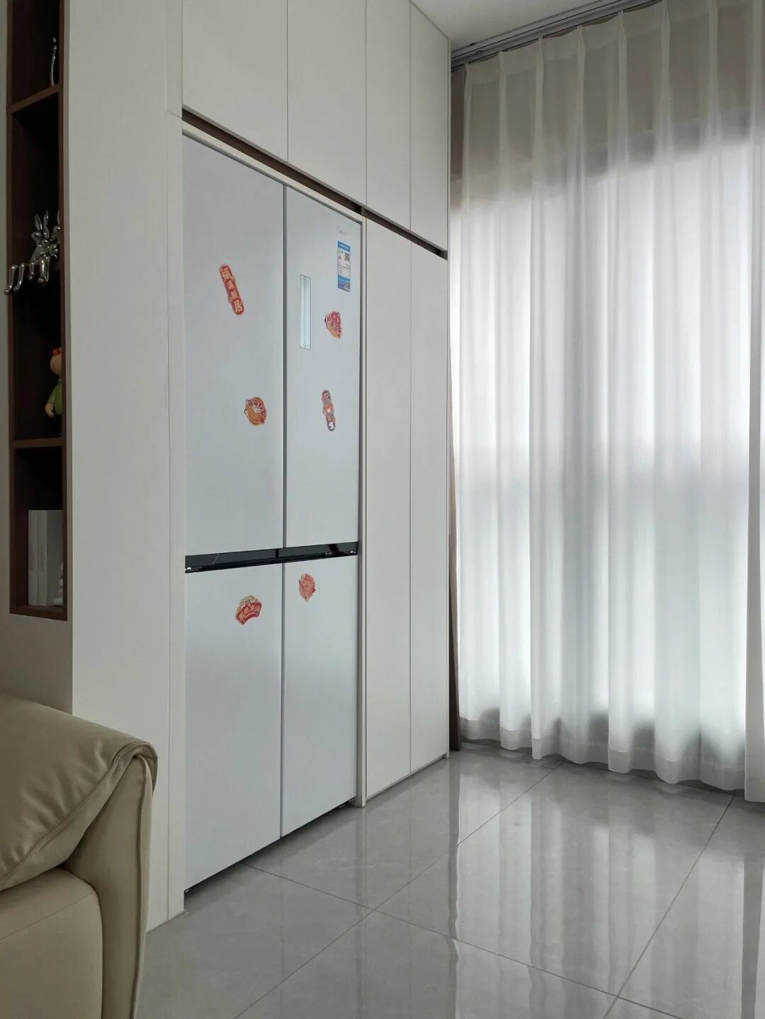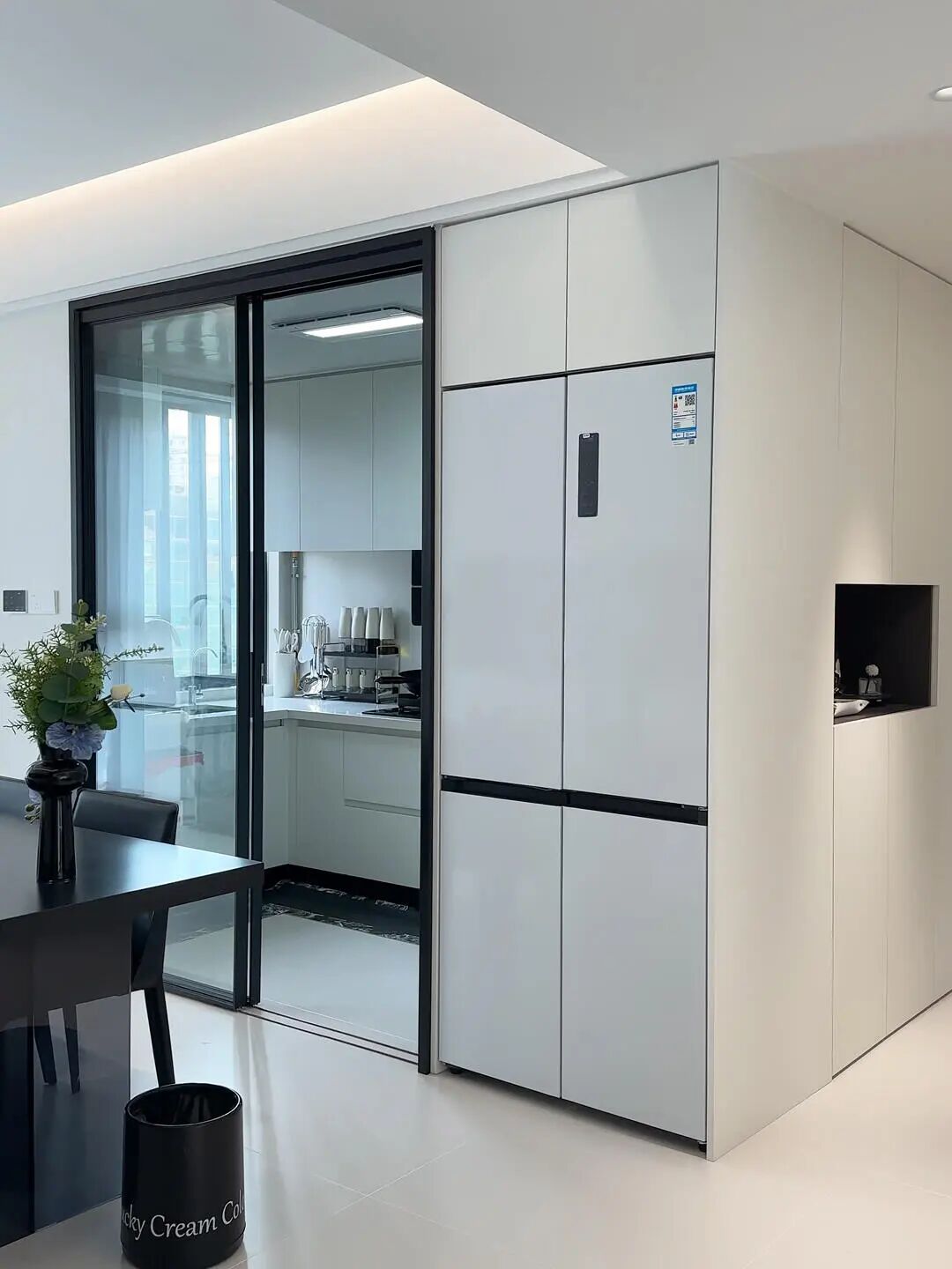 现在的新房,厨房面积小得可怜,很多就三四平米,做完橱柜、放下灶台、水槽、操作台,基本上就没多余空间了。再硬塞一个双开门冰箱进去,厨房一个人在里面做饭都堵得慌,简直是遭罪!