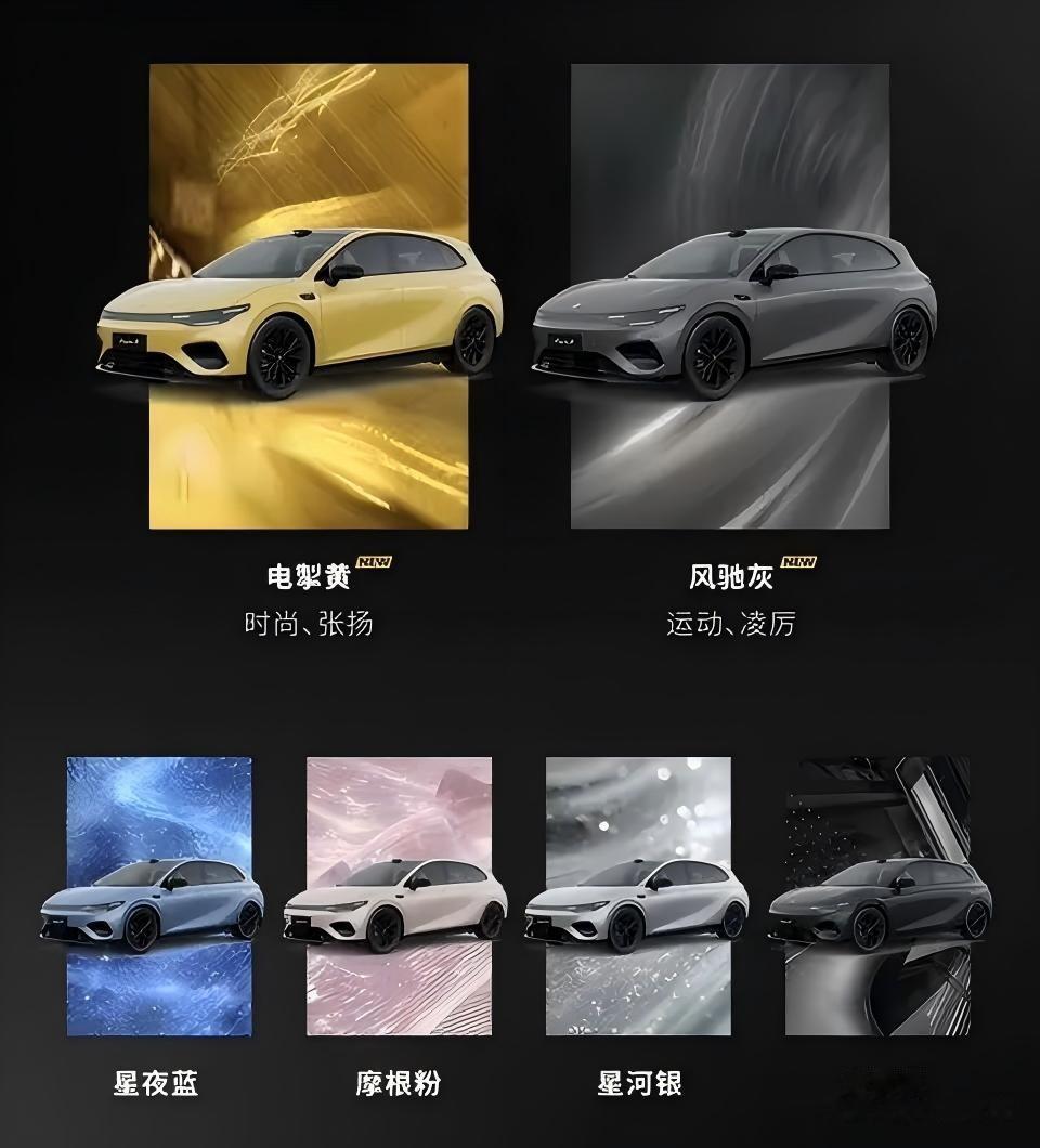 颜色方面,这次主推的是“电掣黄”,实车非常亮眼,妥妥的年轻化定位。另外还有风驰灰、星夜蓝、摩根粉等等六种配色,看得出来零跑是想用色彩打动年轻人。