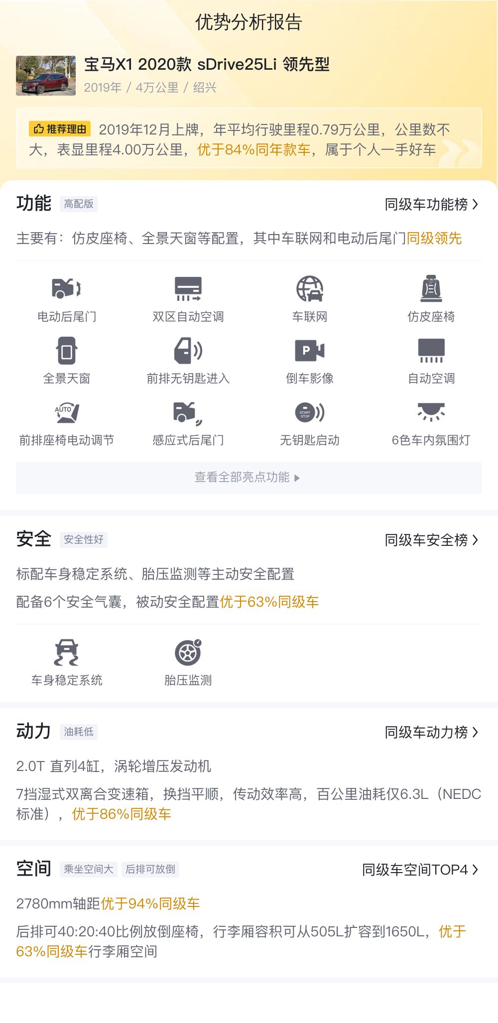 关于用车成本部分,根据估算,这辆宝马X1的年均综合用车成本约1.3万元左右。需要注意的是,实际费用支出可能会因用车强度和环境等因素有明显差异。