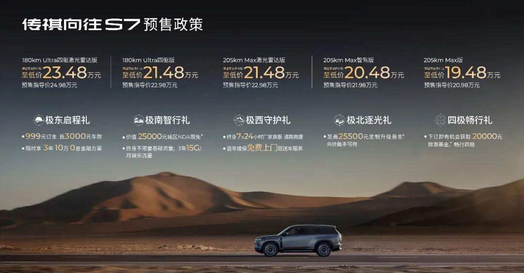 传祺向往S7的预售价,在20万出头。这个价格,在同级别SUV中,绝对算得上是良心价。你想想,20万,能买到什么? 或许是其他品牌的低配车型,空间小,配置简陋;或许是配置勉强过得去的,但动力不足,驾驶体验一般。而传祺向往S7呢?它给你提供了激光雷达、8295芯片、ADiGo 6.0车机系统、Nappa真皮座椅、电动吸合门、20L冰箱……简直是把高端配置“打包”送给你。