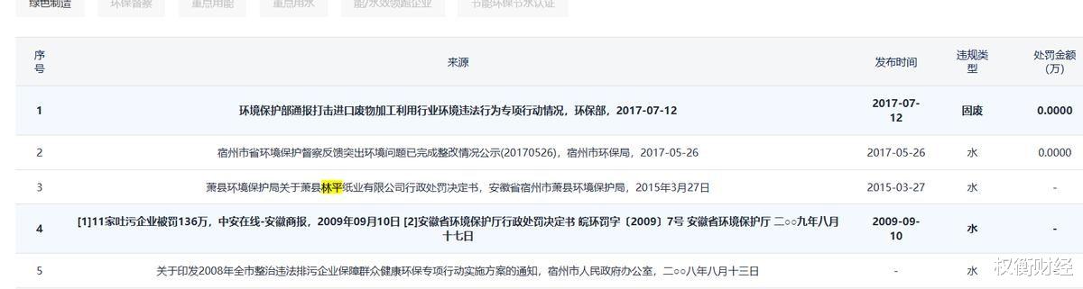 林平发展属于造纸企业,具有废水排放量多、治理难度大等特点;公司运营的热电联产项目涉及污染物排放。历史上,公司曾在2009年、2015年和2017分别被查出水和固废违规行为。如2017年公司擅自修改废水污染源COD、氨氮自动监控设施内校正因子参数,且将COD自动监控设施取样管拔出,插入盛水的塑料烧杯进行离线监测,废水污染源自动监控设施数据弄虚作假。