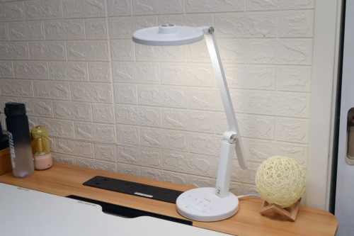 不过需要注意的是,这款台灯的光源并没有做内嵌处理,防眩能力表现中等,UGR大概在16–19之间,在光滑纸张或桌面上使用时,可能会出现一定眩光。