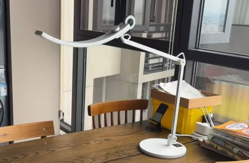 华为达伦智能台灯3的设计简洁现代,圆形底座很美观,灯臂有两处轴承可以灵活调节,能适配不同的照明角度。16.8cm的灯头采用直发光设计,能覆盖约160cm的桌面,中心照度1580lux,光线亮度很充足。它支持Wi-Fi智能控制,能通过手机远程操控,还可以联动智能家居场景,操作特别便捷。但直发光的光线比较聚焦,容易出现刺眼甚至眩光的现象,而且灯面直径相对较小,桌面边缘的光线均匀度不够好,存在一定的明暗差异。