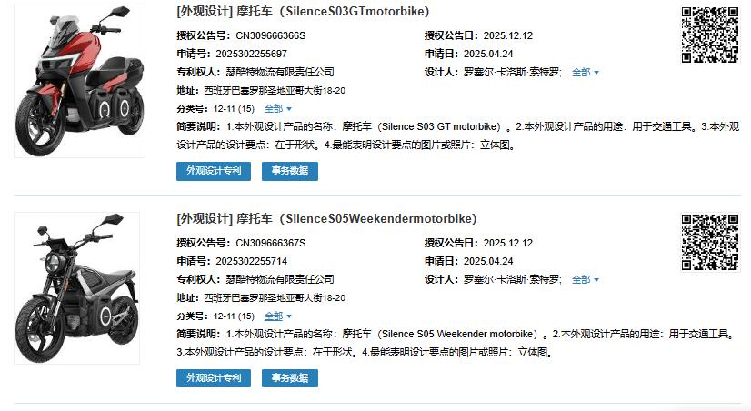 在2018年电摩风潮刚刚兴起之时,来自西班牙的 Silence 就凭借 “小推车充电宝电池”而名声大噪,我们也曾介绍过他们包括S01、S01+、S04在内的多款车型。而在近期,我们发现这个洋品牌在国内申请了其旗下 Silence S03 GT motorbike 和 Silence S05 Weekender 两款的电动摩托车的外观专利。难道说,Silence 准备要把这两款新车卖向国内市场了?