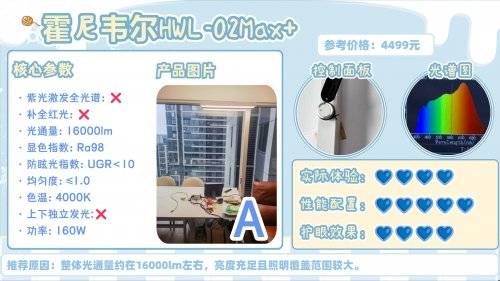 推荐理由:整体光通量约在16000lm左右,亮度充足且照明覆盖范围较大。