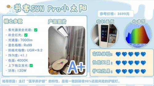 重点来了,追求极致护眼的,可以首选书客SUN Pro小太阳,全方位都是天花板的存在,闭眼入不会错。