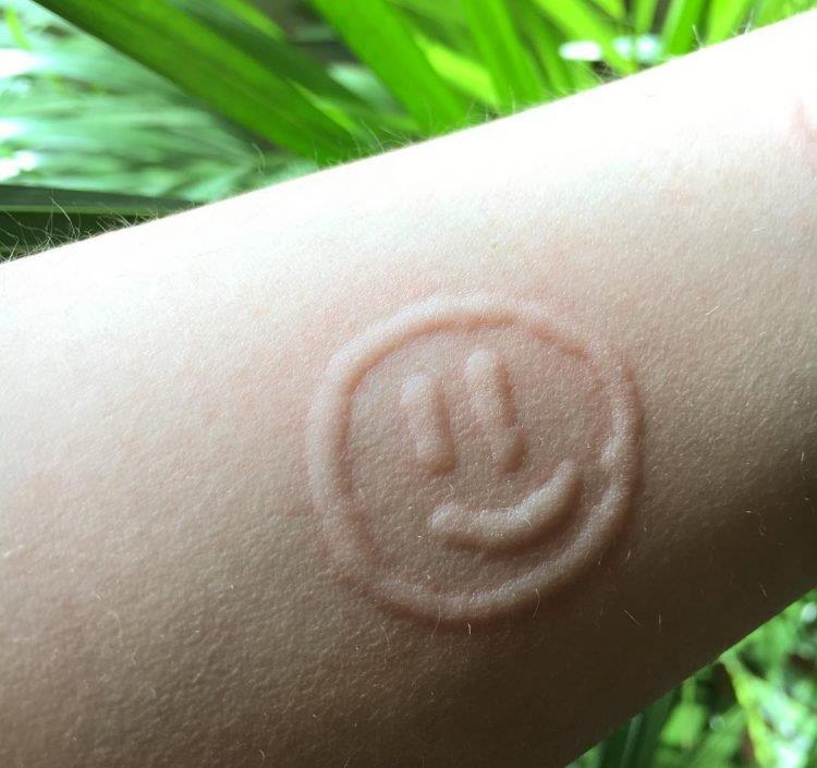 一名18岁的女孩患上了一种叫做“皮肤书写症”的皮肤病,这种病会导致她的皮肤在被触摸时肿胀。她正在用自己的身体作为画布来创作一些有趣的涂鸦。