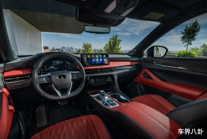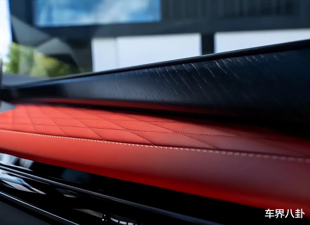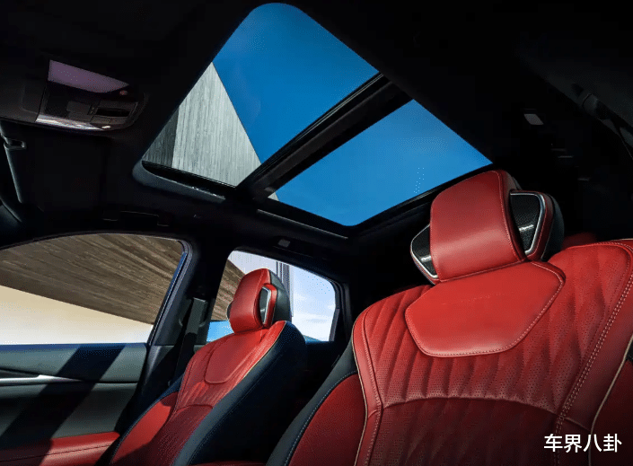 内饰部分,黑红的配色进一步强化了运动属性,大面积的皮质包裹增加了豪华感。