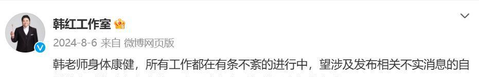 面对这些谣言,韩红工作室迅速做出回应,转发了她的微博,并配文:“韩老师身体康健,所有工作都在有条不紊的进行中。”这一声明不仅为韩红正名,也让关心她的粉丝们松了一口气。