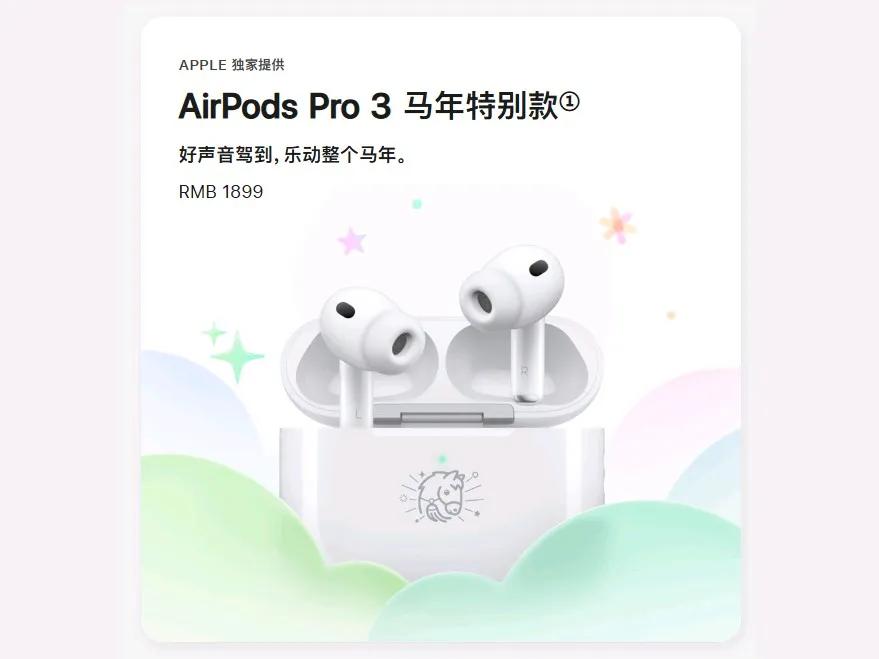 其中为AirPods Pro 3推出了马年特别款,在其充电盒上镌刻了马年限定表情图案,但售价和配置保持不变,仍为1899元。